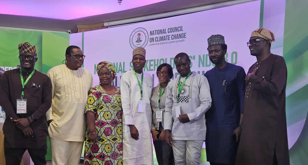 Executive Director, West Africa Green Economic Development Institute (WAGEDI) Prof Magnus Chidi Onuoha with some experts at the Validation of Nigeria’s Nationally Determined Contribution (NDC) 3.0